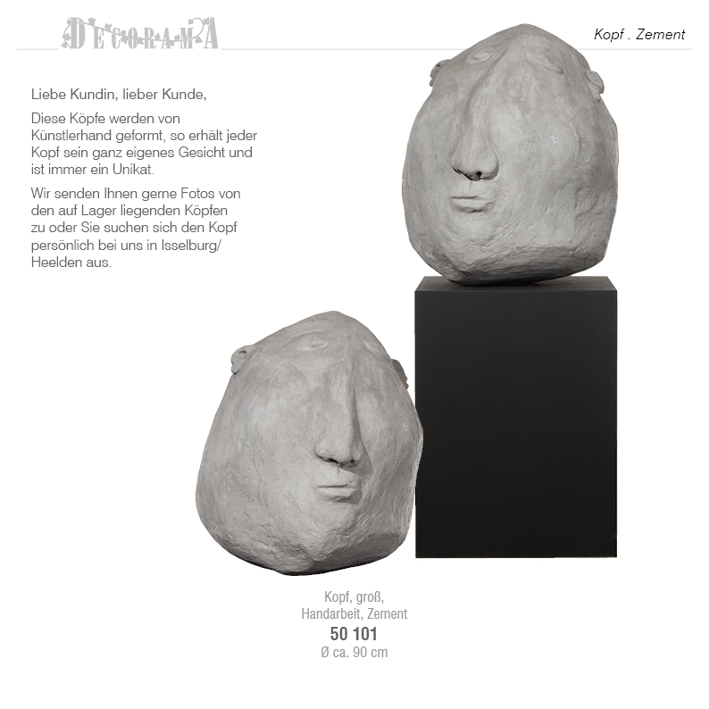 Diese Köpfe werden von Künstlerhand geformt, so erhält jeder Kopf sein ganz eigenes Gesicht und ist immer ein Unikat. Wir senden Ihnen gerne Fotos von den auf Lager liegenden Köpfen zu oder Sie suchen sich den Kopf persönlich bei uns in Isselburg/Heelden aus.